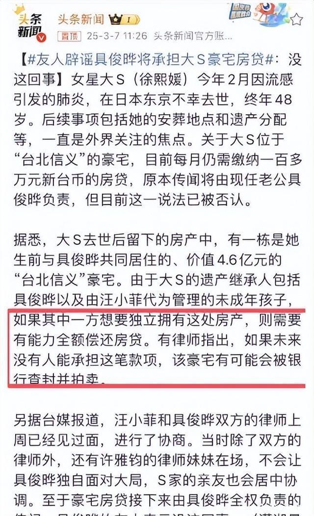 具俊晔被曝与大S子女平分遗产,此前“承诺放弃”并无法律效力 杭州日报2025-03-03